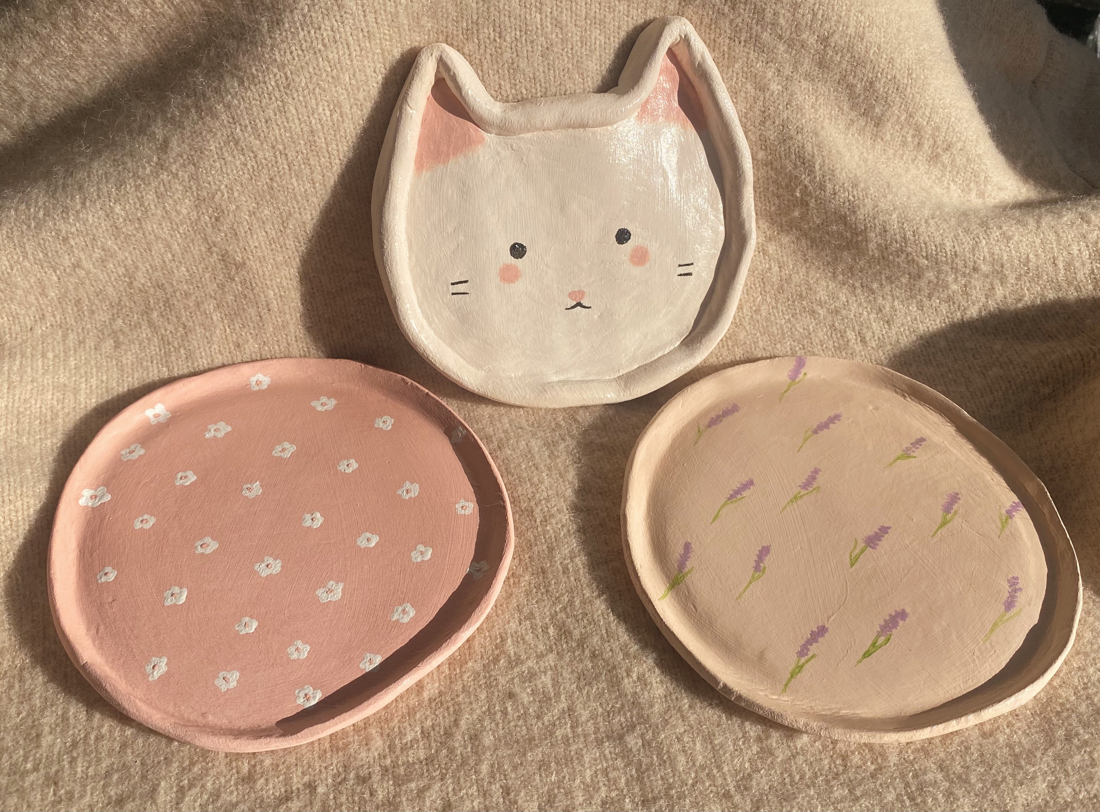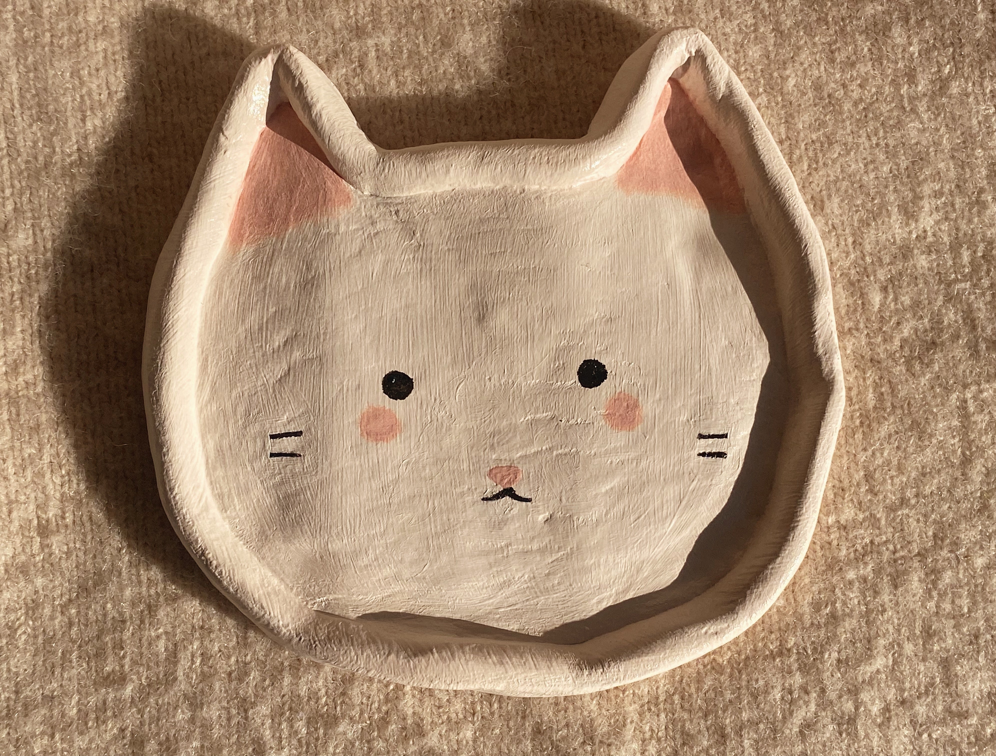 This adorable hand painted clay kitty dish can be used as a decor candle burning dish, or a trinket tray for jewelry, hair clips, keys, and other accessories. These dishes are handmade with clay, painted with acrylic paints, and then sealed with a clear coat to create a durable and shiny finish.